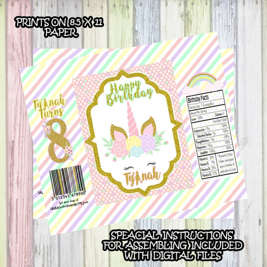 Unicorn Chip Bag Gold Unicorn Chipbags Custom Chip bag Gold Glitter Bags Cute Bags Birthday Chip Bag Pink Chip Bag Unicorn and Flowers Bags