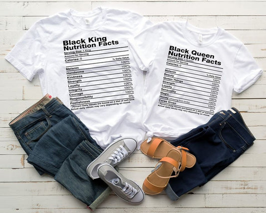 Black King and Queen T-Shirt Couples T-Shirt Family T-Shirt King T-Shirt Queen T-Shirt Nutritional Facts Shirt Queen & King Nutrition Shirt