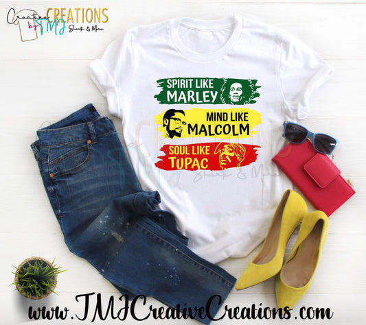 Inspirational T-Shirt Spirit like Marley Mind Like Malcolm Soul Like Challenge like Rosa Inspire like Michelle Run the World like Bey