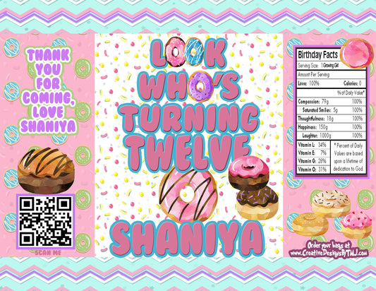 Donuts Custom Party Favors — Chip Bags, Juice Pouches, Water Bottle Labels & More
