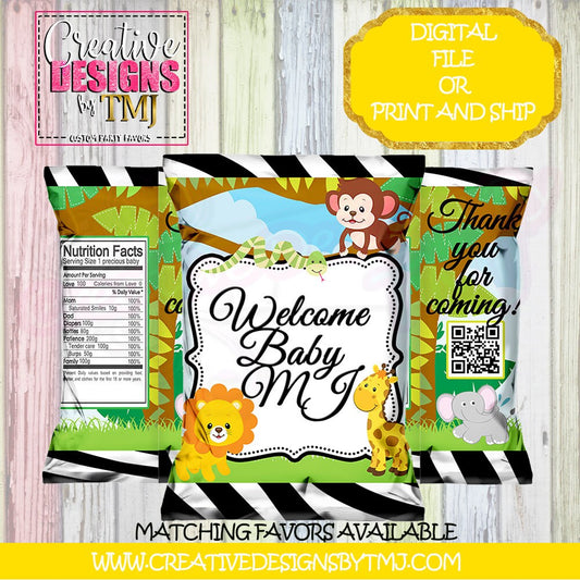SAFARI BABY SHOWER Favors Safari Party Chip Bags Safari Chip Bag Jungle Baby Shower Favors Safari Party Jungle Candy Bar Jungle Party