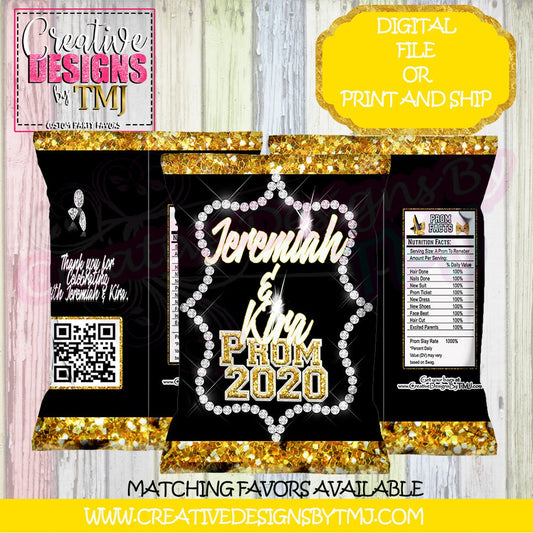 PROM SENDOFF Favors Prom Chip Bag Prom Party Favors Wedding Favor Diamond Chip Bag Favor Water Bottle Labels Juice Fruit Snacks Candy Bar
