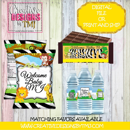 SAFARI BABY SHOWER Favors Safari Party Water Bottle Labels Safari Water Bottles Safari Candy Bars Safari Party Favors Jungle Party