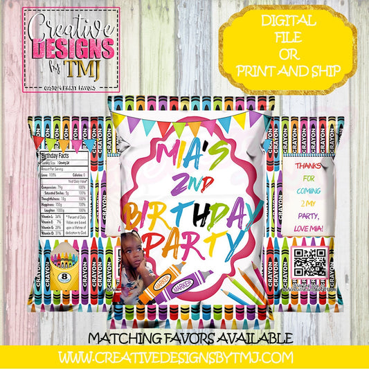 CRAYON PARTY FAVORS Crayon Party Chip Bag Favors Crayon Favors Crayon Party Kool Aid Jammers Crayon Party Chip Bag Labels Juice Fruit Snacks