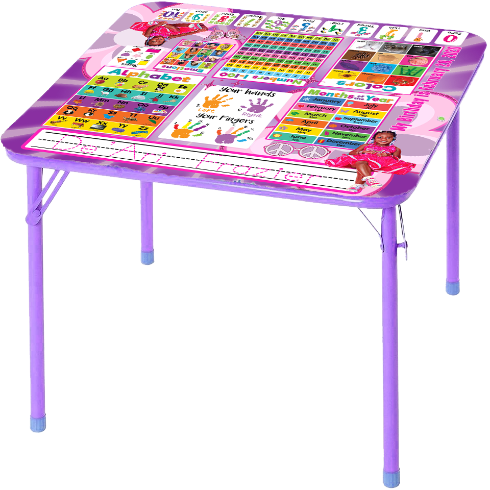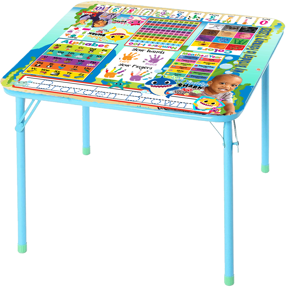 These personalized Learning Tables are made to order just for your child with their Photo, Name and Birthday. They will spend hours of fun learning with this personalized activity table set. This Learning Table Set comes with a 24x24" table and two custom padded foldable chairs.