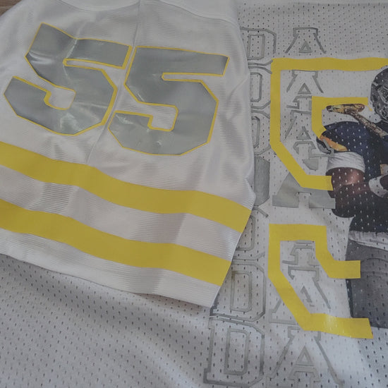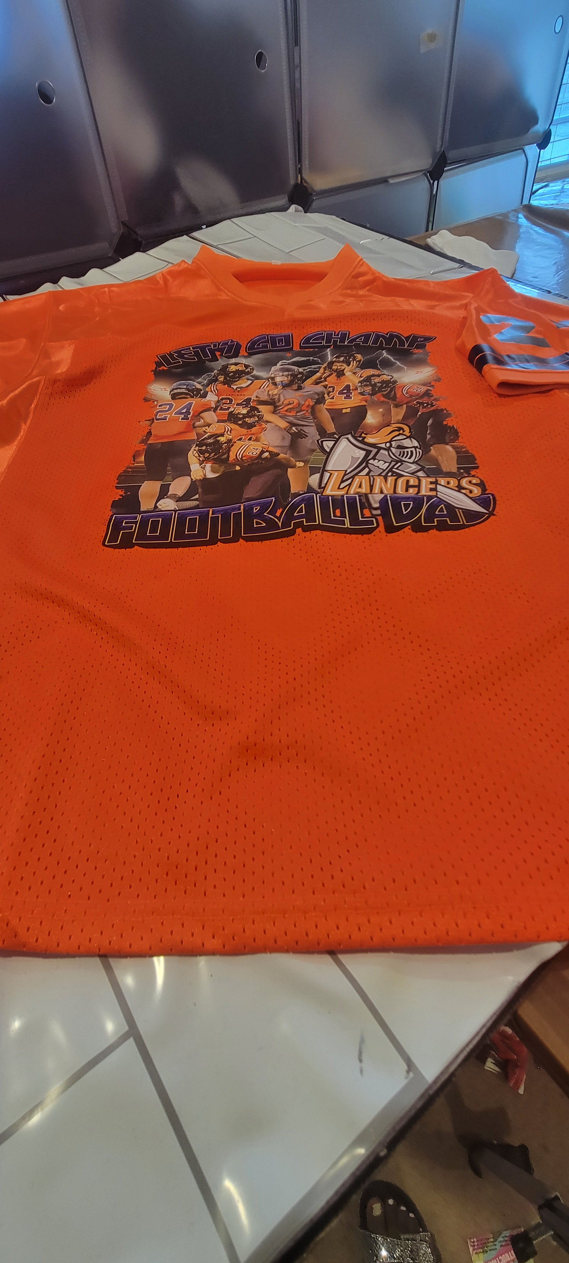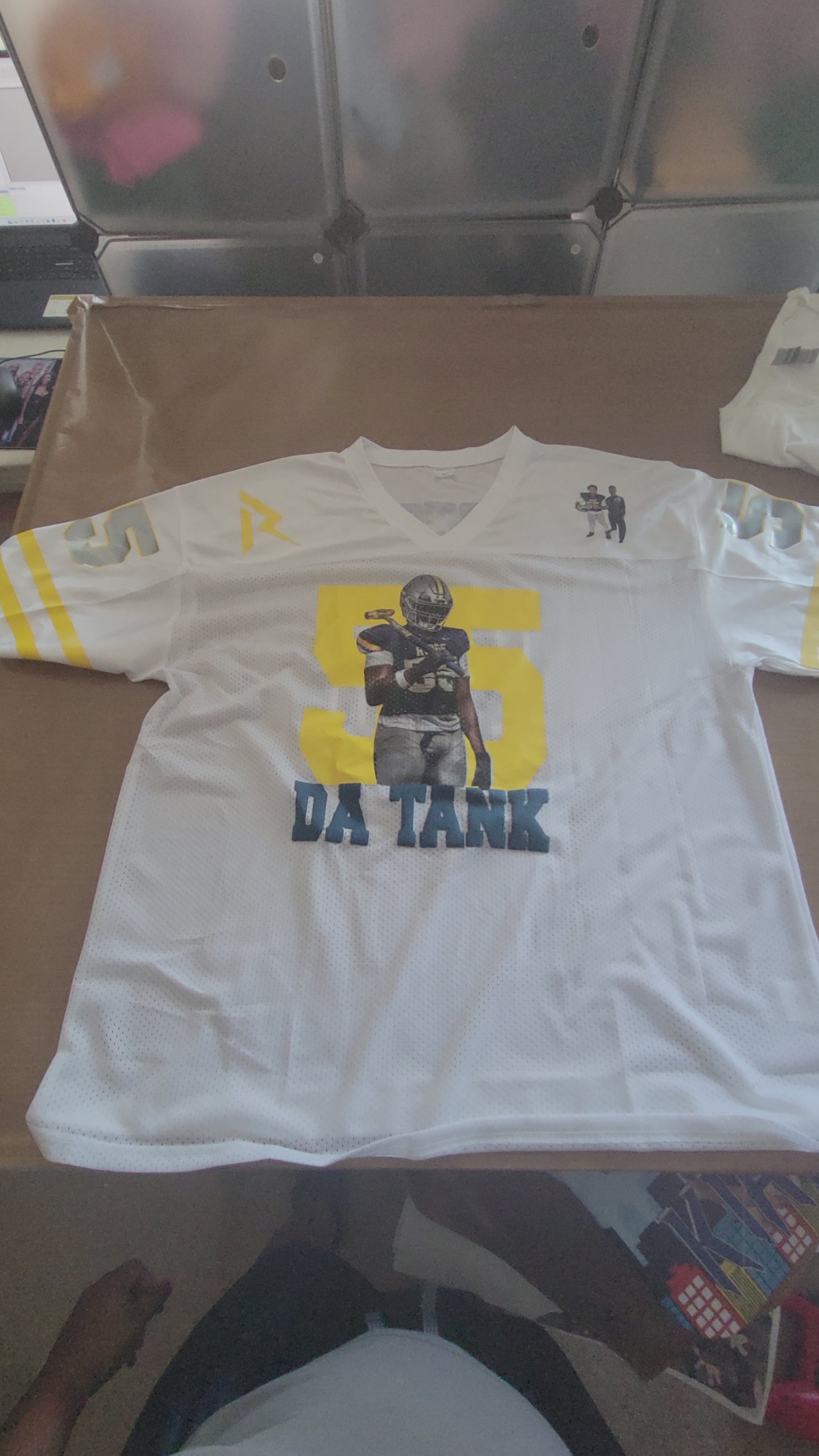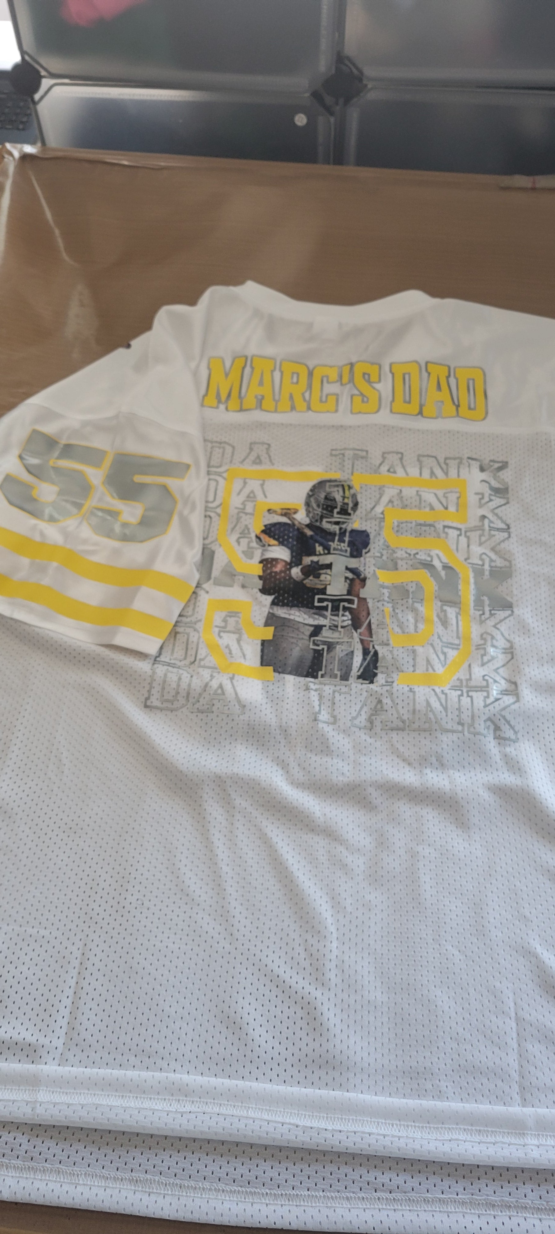 Stand out on game day with a vinyl-pressed custom football jersey! Add your team name & number. Available in multiple colors & unisex sizes. Perfect for fans or athletes.
