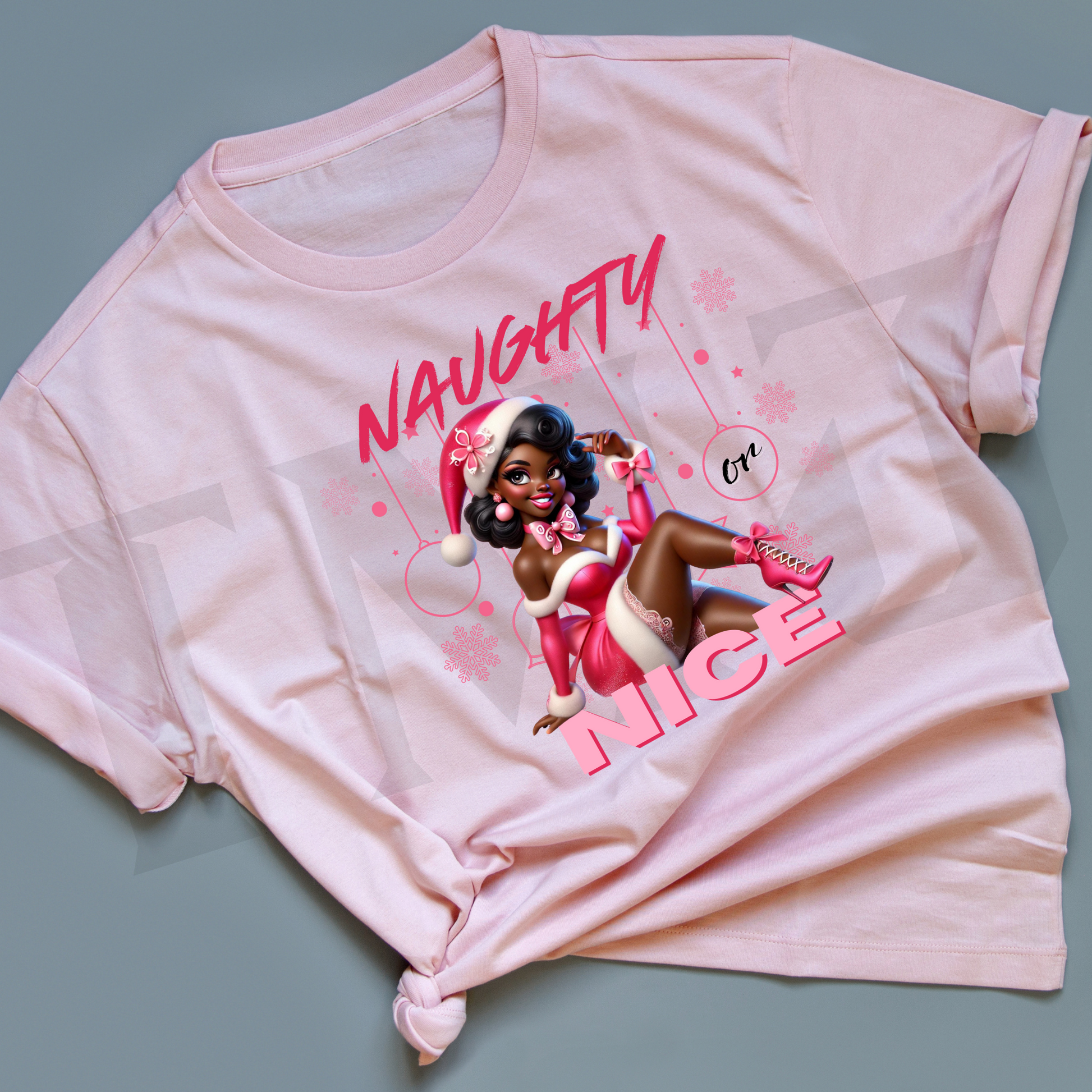 Looking to add a little spice and cheer to your holiday wardrobe? Our "Naughty or Nice Mrs. Claus" design is here to do just that! 🎅✨ Perfect for shirts, sweatshirts, and hoodies, this playful and sassy design brings a festive twist with a bit of attitude—so you can spread holiday cheer with a wink! No more boring holiday outfits; this design has you covered for all your holiday gatherings or gift-giving needs!